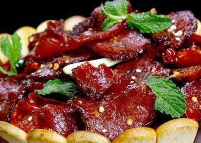 这款美食是平坝牛肉宴中一道非常经典的菜式。[bai]主料选用肥壮肉牛的后腿,先通过花椒和食盐的腌制,然后经过晾晒,风干,油炸的烹饪形式制作而成。风味上面和我们平时吃的风味小吃有点相似,就好比牛肉干一类的美食。它的亲民程度非常之高,无论是老人还是小孩,都对其赞誉有加。